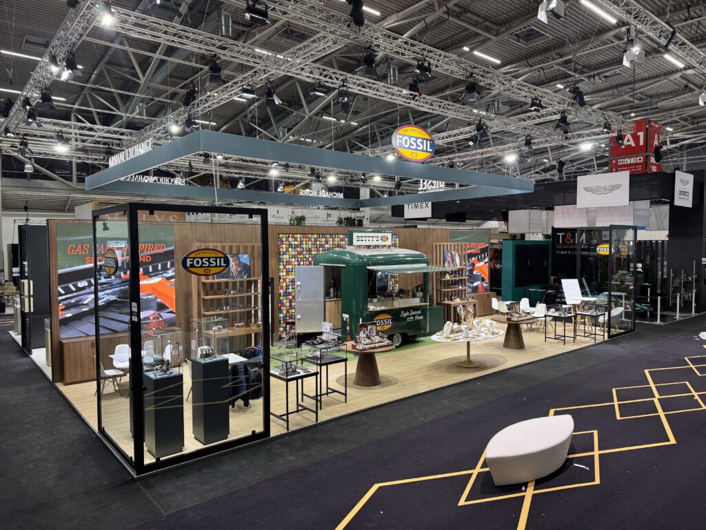 Zur diesjährigen INHORGENTA durften wir bereits zum zweiten Mal den Messestand von Fossil montieren. In diesem Jahr präsentierte sich die Marke mit einem vollständig neuen Standdesign und setzte damit ein frisches, modernes Statement auf der Messe. Der Auftrag wurde von Wenger.one an uns vergeben.